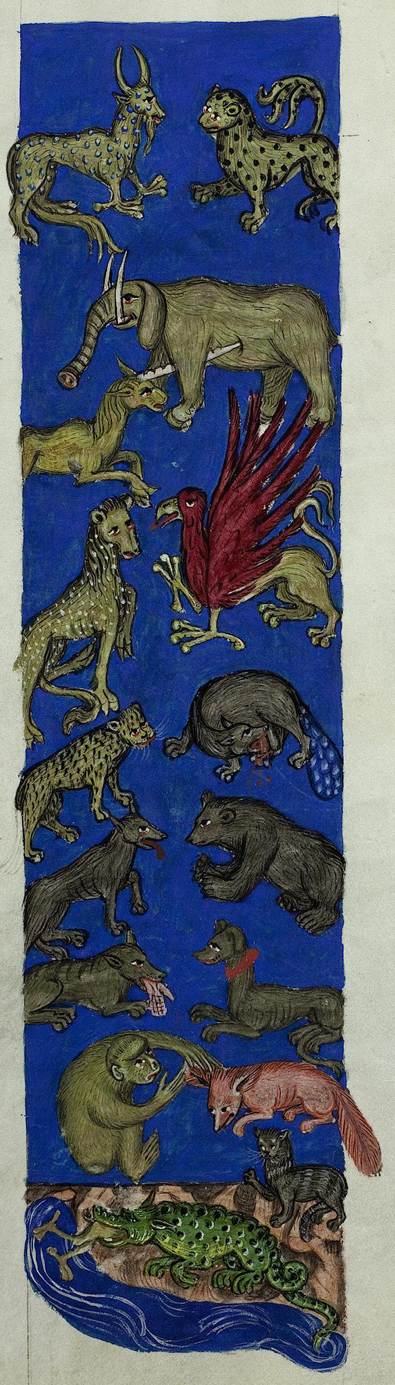 Rabanus often describes attributes of an animal in several sections, not always contiguous. Minor additions to the animal description are not shown here, though if there are two more separate substantial descriptions they are shown as separate entries, as are the same animal described under different names.