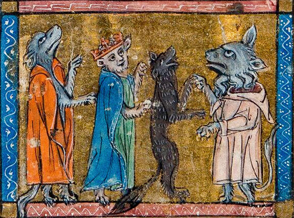 In Branch I of the French Roman de Renart, King Noble the lion has summoned Reynard to court to answer for his crimes, but the fox refuses to appear. Brun the bear is sent to fetch him, and travels to Reynard's castle. Reynard tricks Brun, telling him there is a place he knows where the bear can have as much honey as he can eat. Brun eagerly follows Reynard's instructions, but soon regrets it.