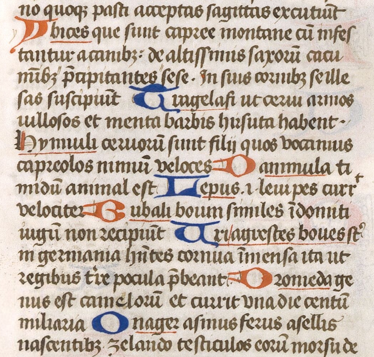 A sample of the manuscript text, showing the brevity of each animal description.