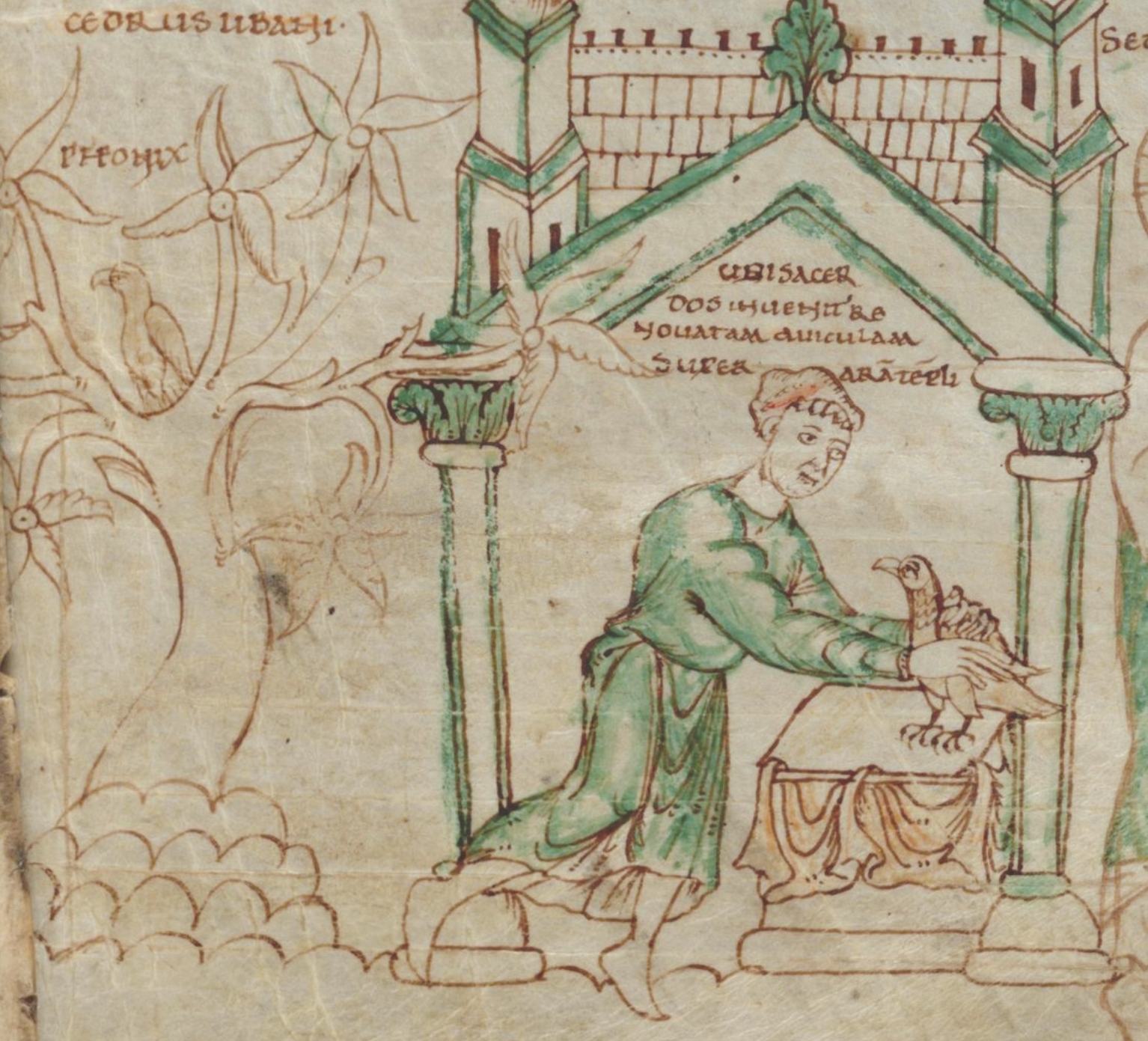 The Savior said in the Gospel, "I have the power to lay down my life, and I have the power to take it again" [John 10:18]. And the Jews were angered by his words. There is a species of bird in the land of India which is called the phoenix, which enters the wood of Lebanon after five hundred years and bathes his two wings in the fragrance. He then signals to the priest of Heliopolis (that is, the city named Heliopolis) during the new month, that is, Adar, which in Greek is called Farmuti or Phamenoth. When the priest has been signaled, he goes in to the altar and heaps it with brushwood. Then the bird enters Heliopolis laden with fragrance and mounts the altar, where he ignites the fire and burns himself up. The next day then the priest examines the altar and finds a worm in the ashes. On the second day, however, he finds a tiny birdling. On the third day he finds a huge eagle which taking flight greets the priest and goes off to his former abode. If this species of bird has the power to kill himself in such a manner as to raise himself up, how foolish are those men who grow angry at the words of the Savior, "I have the power to lay down my life, and I have the power to take it again" [John 10: 18]. The phoenix represents the person of the Savior since, descending from the heavens, he left his two wings full of good odors (that is, his best words) so that we, holding forth the labors of our hand, might return the pleasant spiritual odor to him in good works. Physiologus, therefore, speaks well of the phoenix.